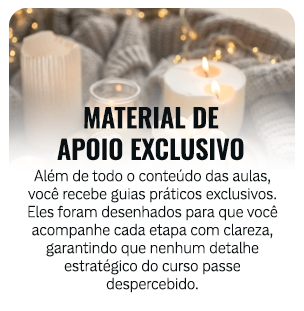 Além do material detalhado do curso, oferecemos suporte direto através do grupo exclusivo de alunos no WhatsApp, onde você pode fazer perguntas e receber respostas rapidamente.